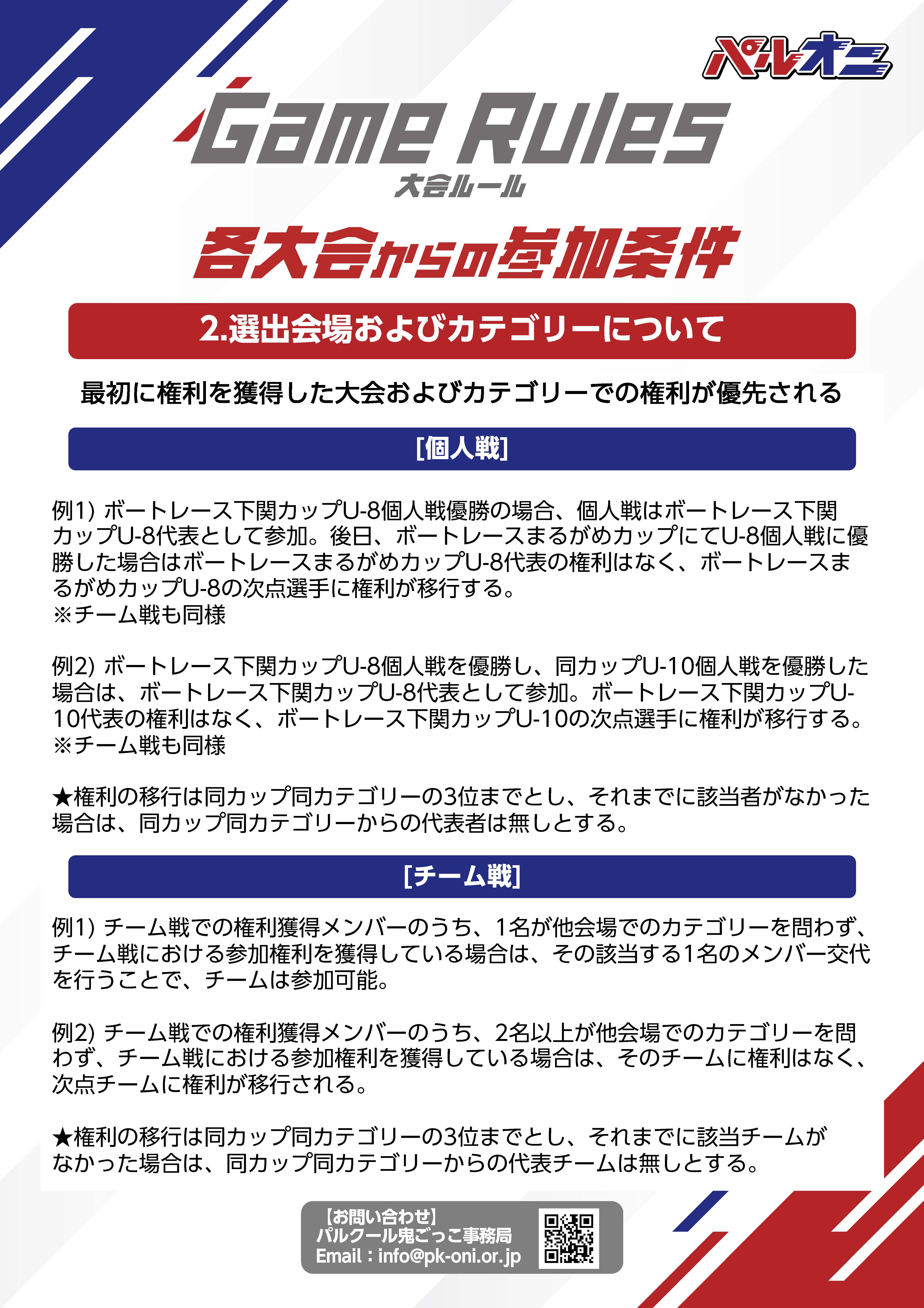 の最大2カテゴリー)の場合、権利獲得大会は同一会場ではない場合も可